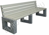 Скамейка "Евро 1 со спинкой" - фактура: Питерский гравий, дерево: Светлый дуб