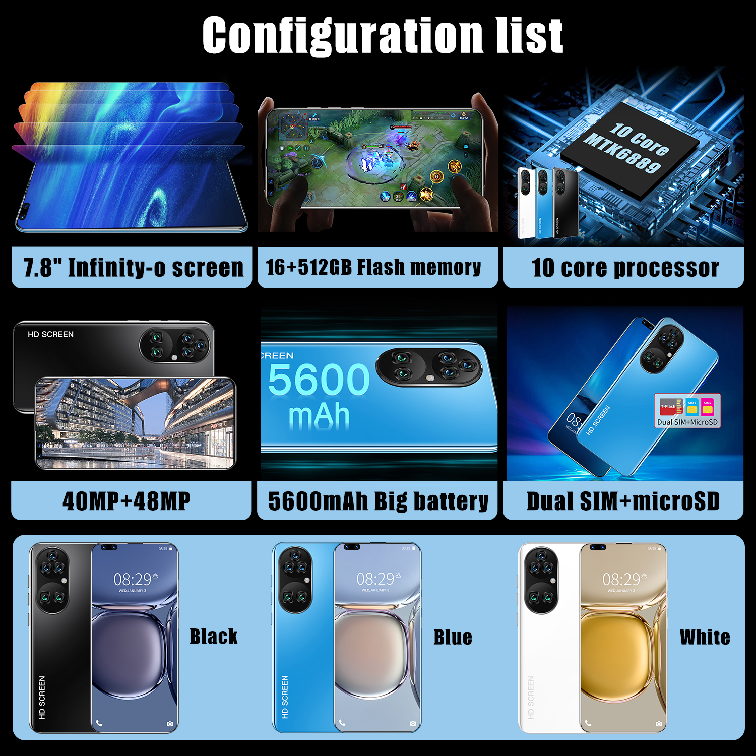 Смартфон P50 Pro 7.3HD 8/256GB, белый
