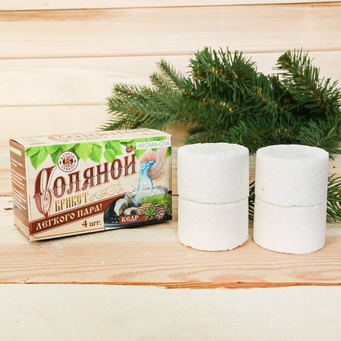 Соляной брикет для бани "Лёгкого пара", 4 шт, с ароматом кедра