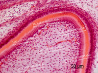 Нижняя челюсть зародыша свиньи. Стадия гистогенеза зуба.
