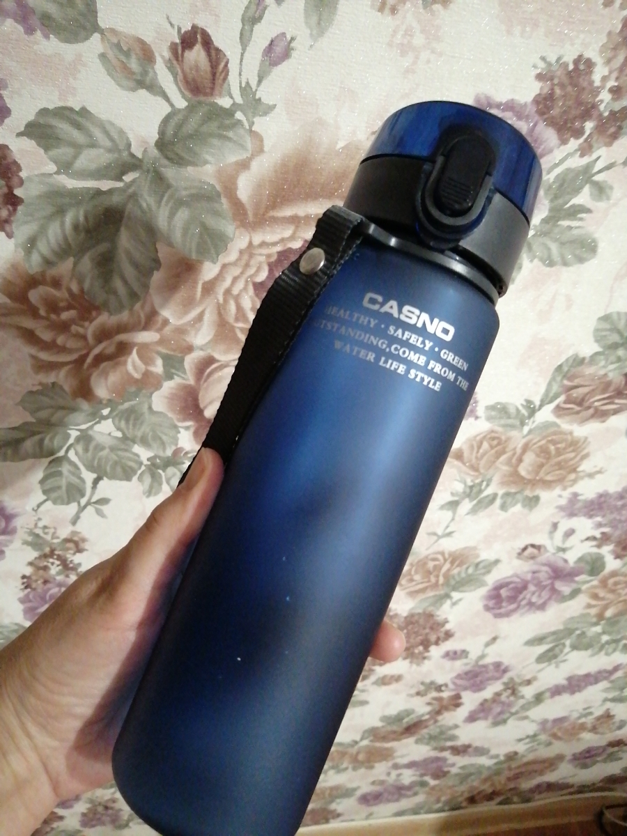 Бутылка для воды "Enjoy sports", объем 800 мл, размер 8х26 см, клик, на ремешке, цвет голубой
