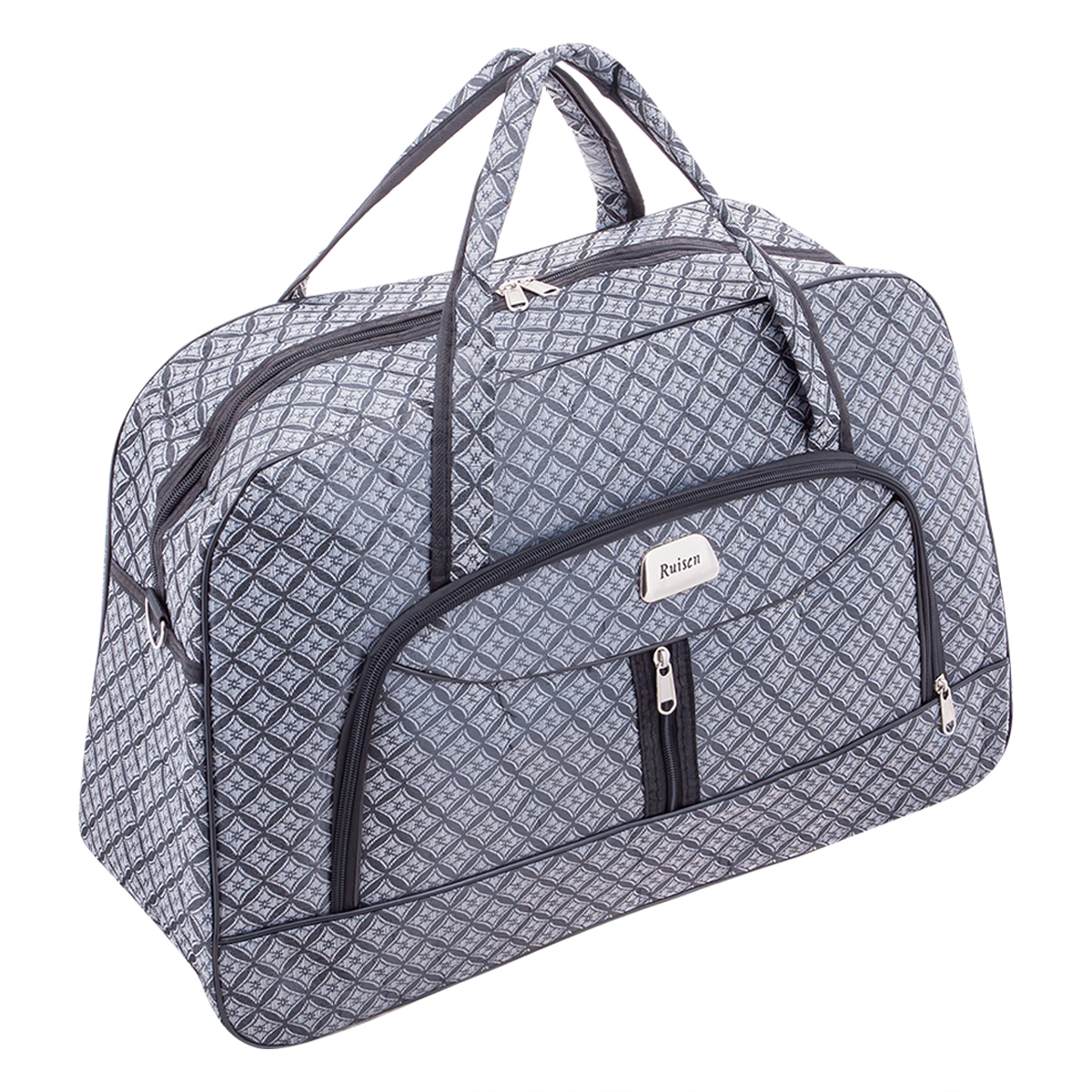 Сумка женская дорожная 55х35х17 33 л с узором серая 8020243