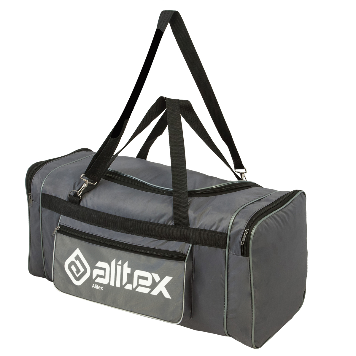 Сумка спортивная, 3 отдела на молниях, наружный карман, длинный ремень, цвет чёрный