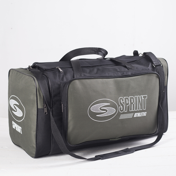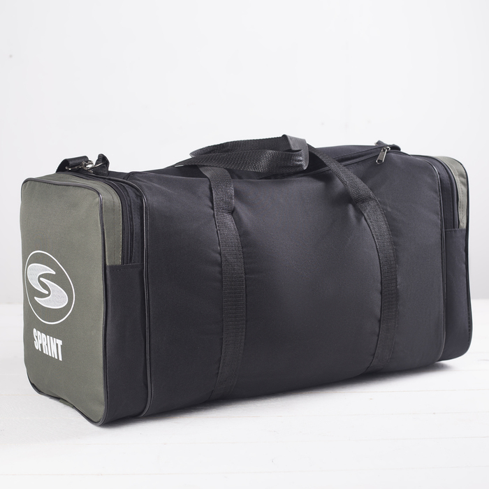 Сумка спортивная, отдел на молнии, 3 наружных кармана, цвет чёрный/зелёный