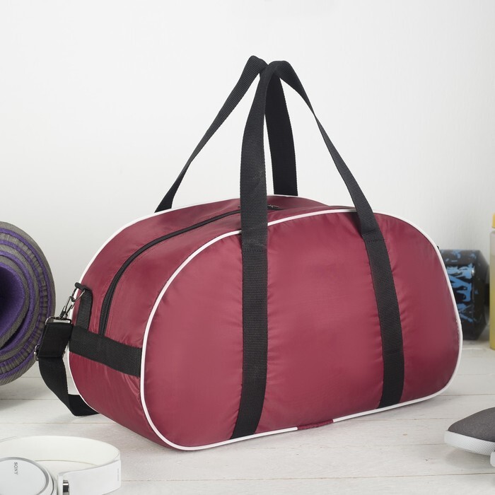 Сумка спортивная, отдел на молнии, наружный карман, длинный ремень, цвет бордовый