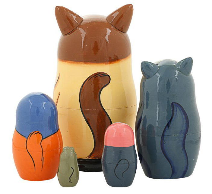 Матрешка "Кошка с рыбкой", 5 мест, 17 см