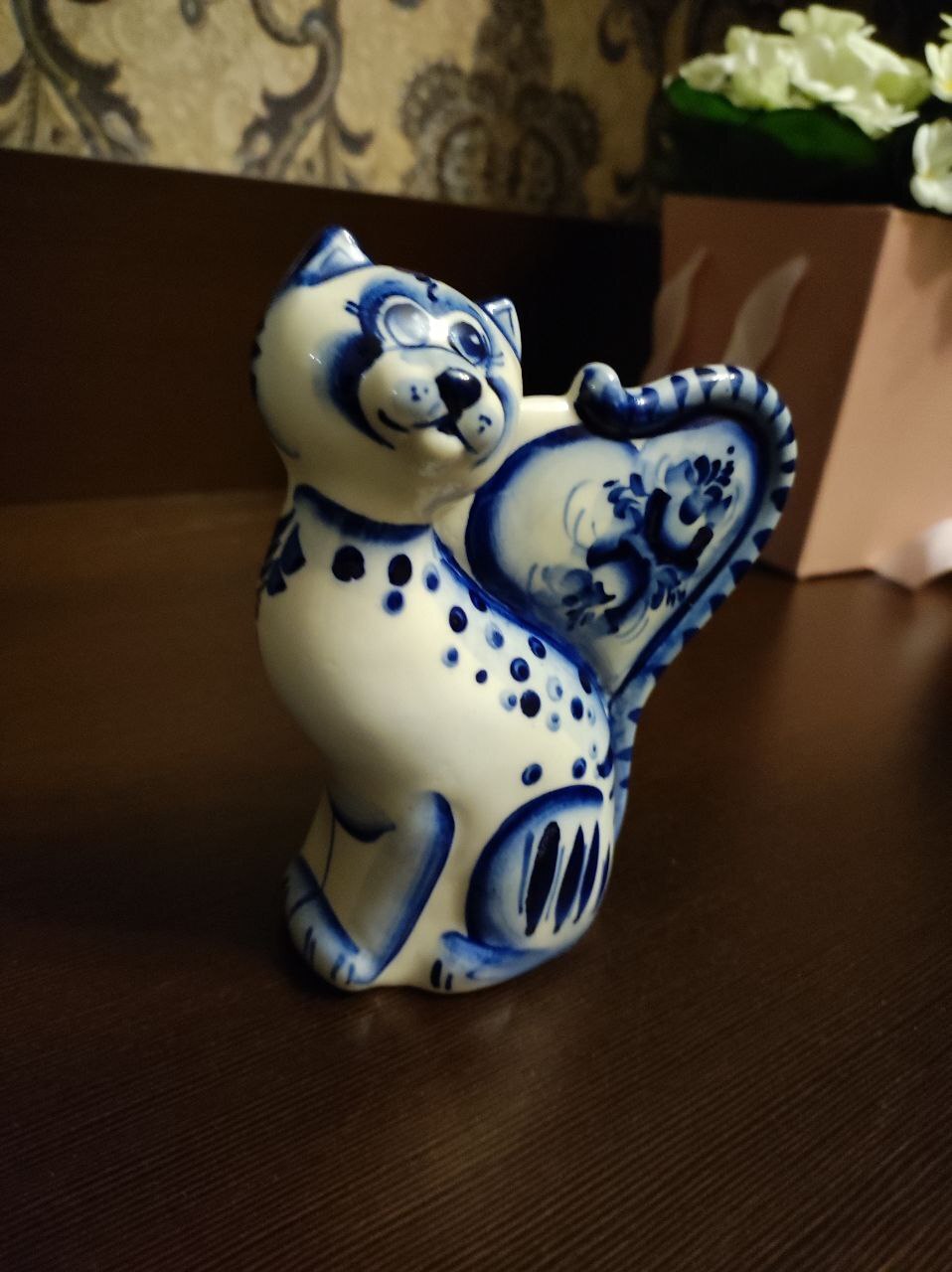 Скульптура "Гаврюша с бабочкой" в золоте 10,5 см., гжель фарфор ручная работа