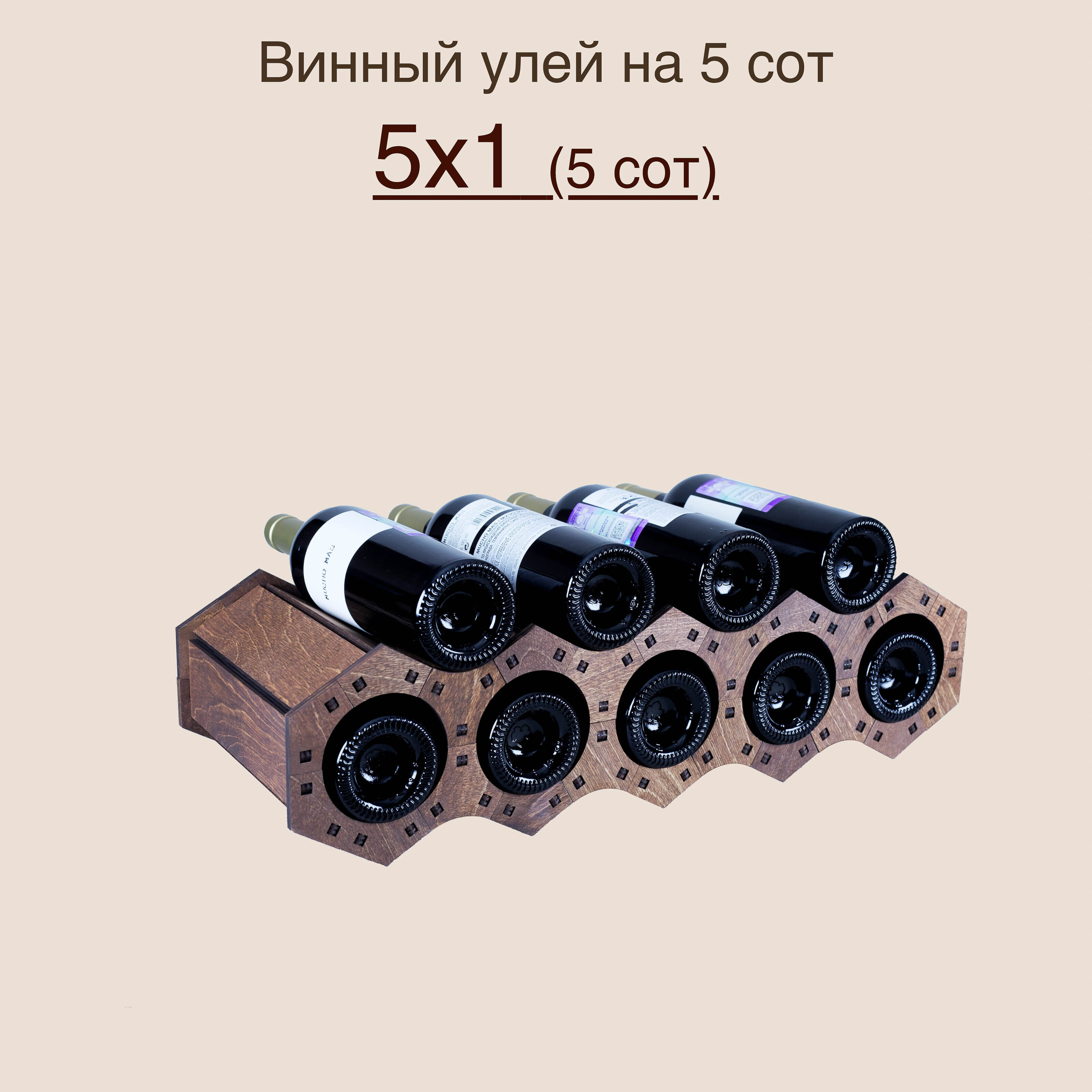 Стеллаж, Витрина выставочная для вина "Винный улей" натуральный шпон на 23 соты (5х5), 23х21,5х33 см
