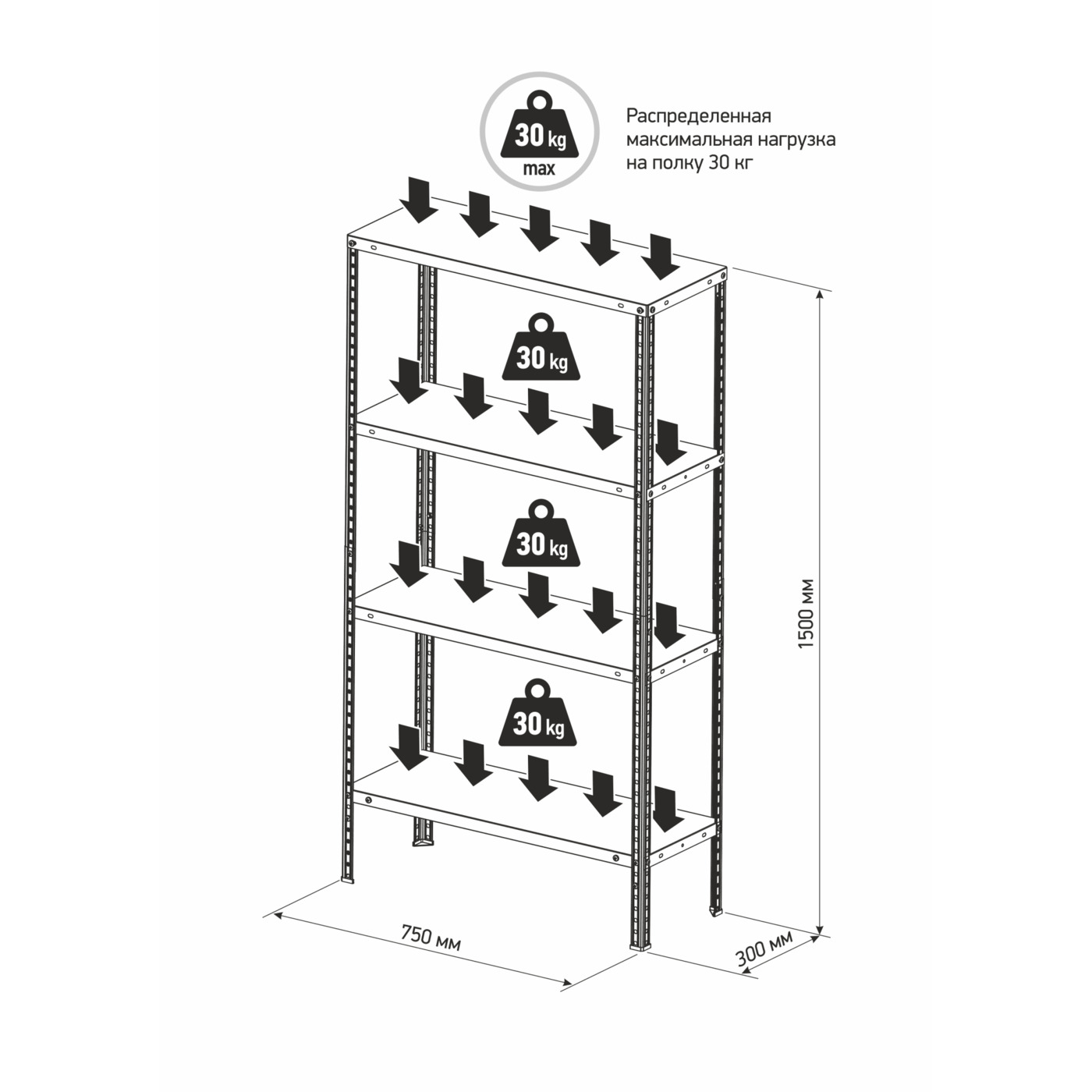 Стеллаж S4 (ДМ), 46.3х21.2х173.1 см
