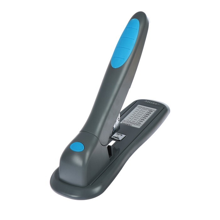 Степлер брошюровщик с поворотным механизмом, металлический, синий