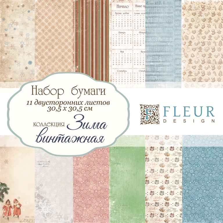 Набор бумаги для скрапбукинга "Новогодняя ботаника", 30 х 30 см, 180 г/м