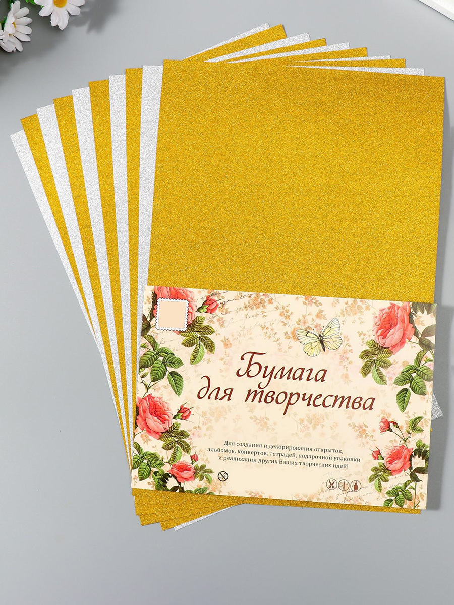 Бумага для творчества, на клеевой основе плотность 80 гр, набор 10 листов, формат А4, золото/серебро
