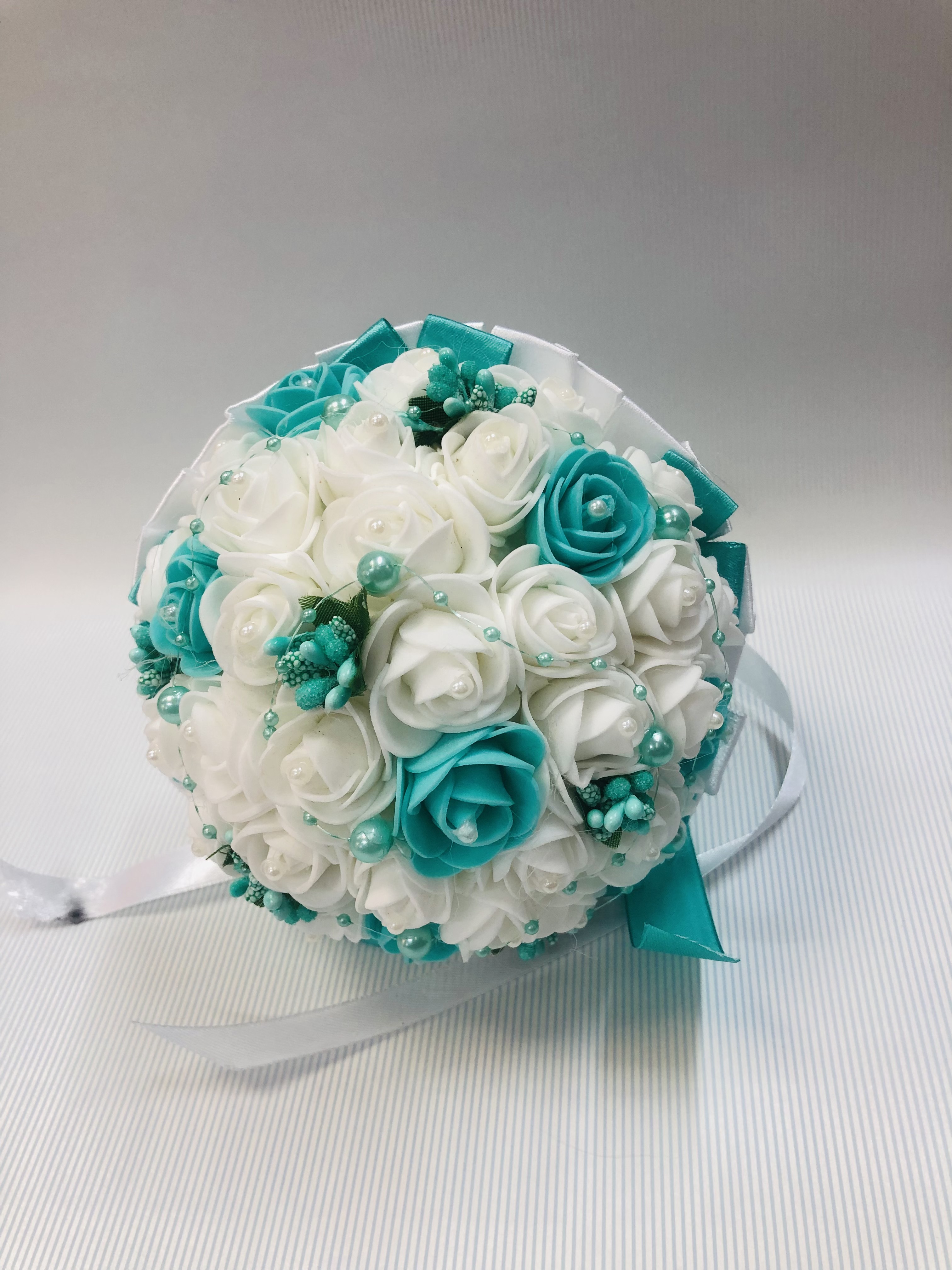 Букет невесты-дублер с латексными цветочками лентами и бусинками