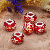 Бусинка 'Ромашка', цвет красно-белый в серебре