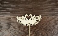 Тсв08-02-0000 Топпер "Свадебный" "Совет да любовь" с лебедями (шир.10см; выс.5см) неокраш. на палочк