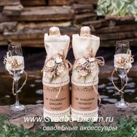 Украшение для бутылок шампанского - коллекция "Рустикальная свадьба"