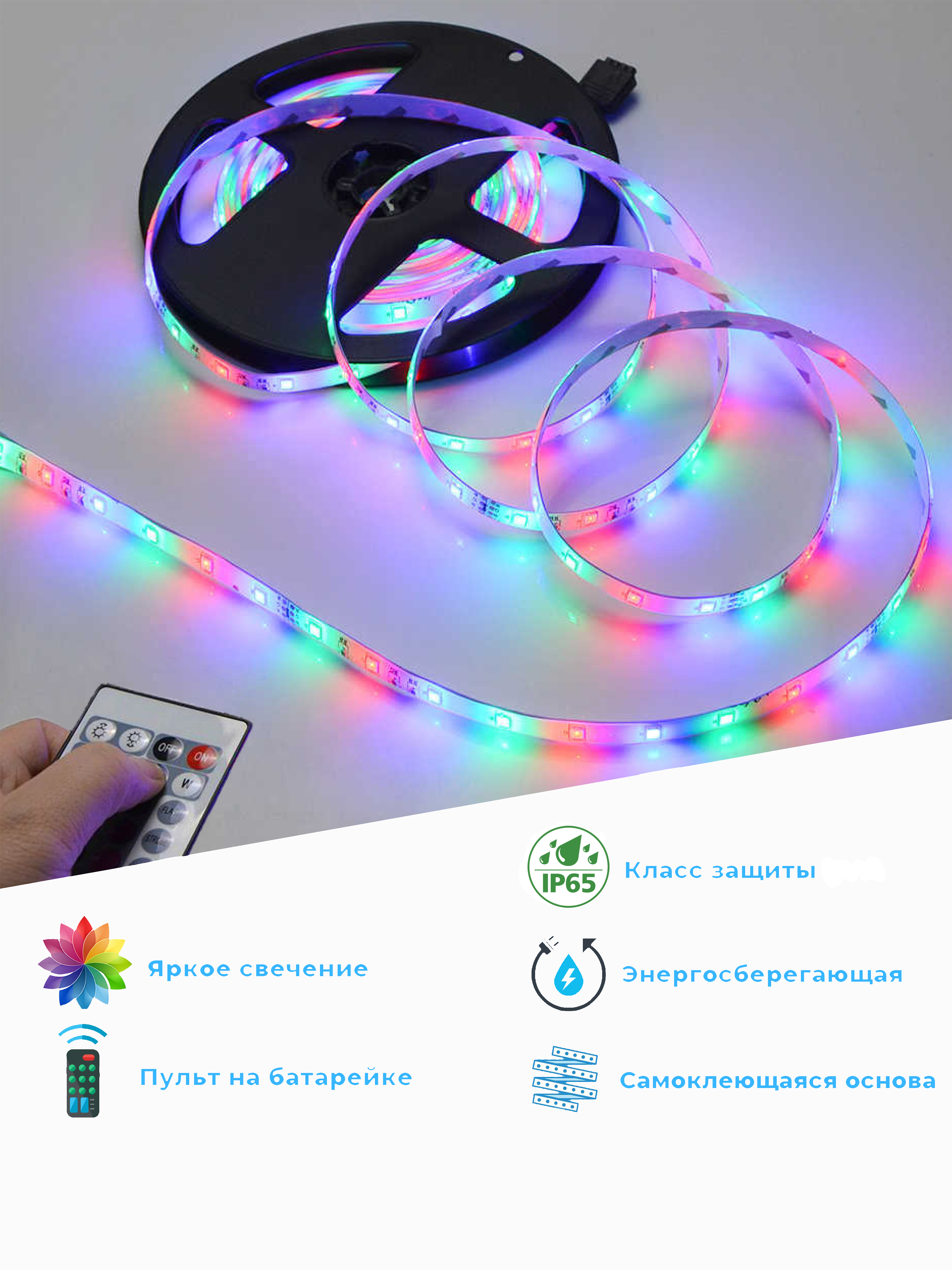 Светодиодная лента 5м, 12В, IP65 LED SMD 5050 Цветная