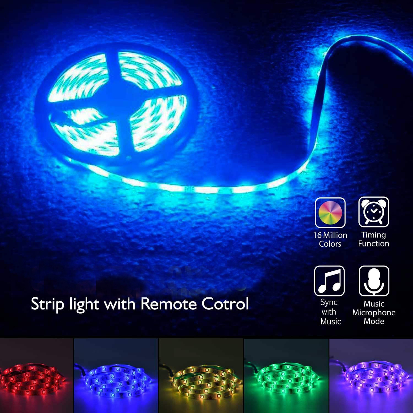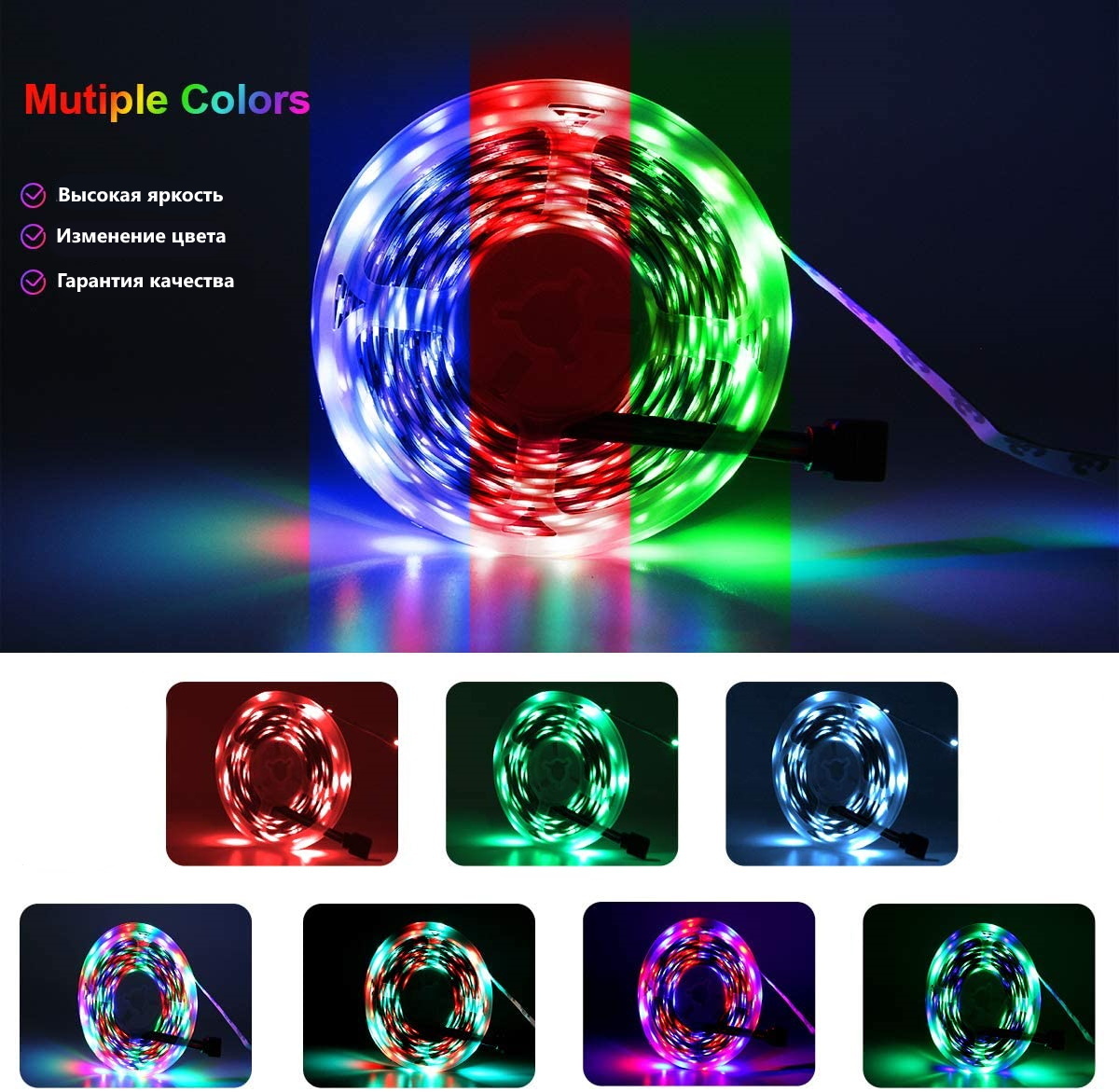 Светодиодная лента 5м, 12В, IP65, 30 LED/m Лента цветная LED SMD RGB 5 метров