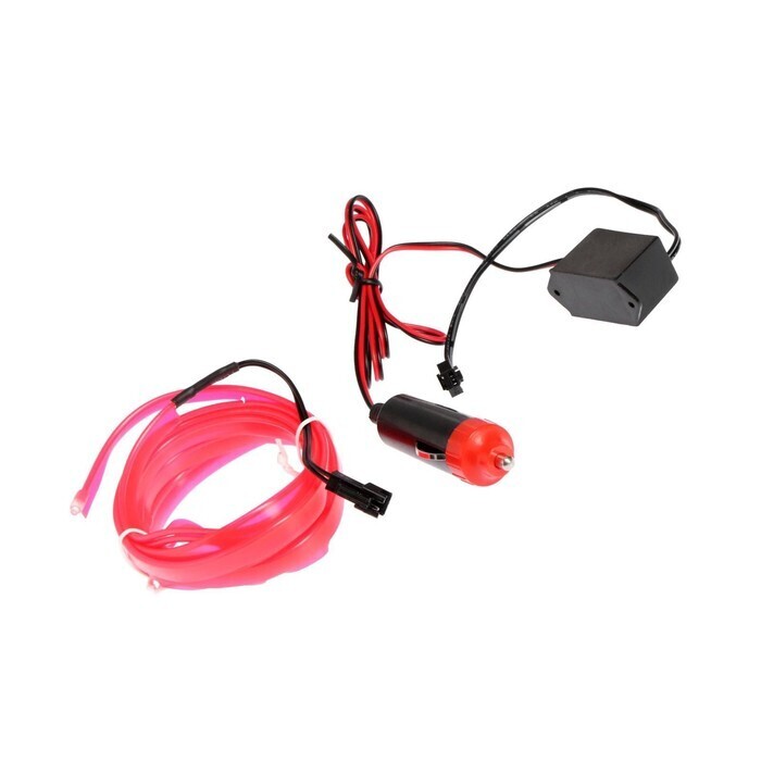 Неоновая нить для подсветки салона автомобиля, адаптер питания 12 В, 2 м, розовый