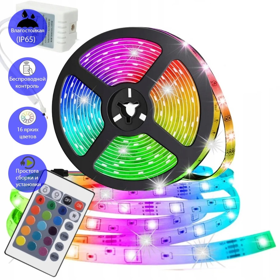 Светодиодная лента 5м, 12В, IP65 с пультом многоцветная с пультом