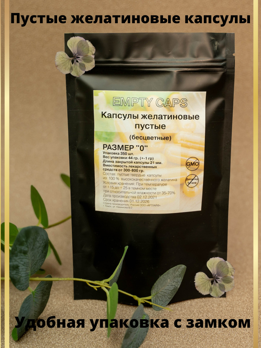 Пустые желатиновые капсулы для лекарств. Упаковка 350 шт. Размер 0