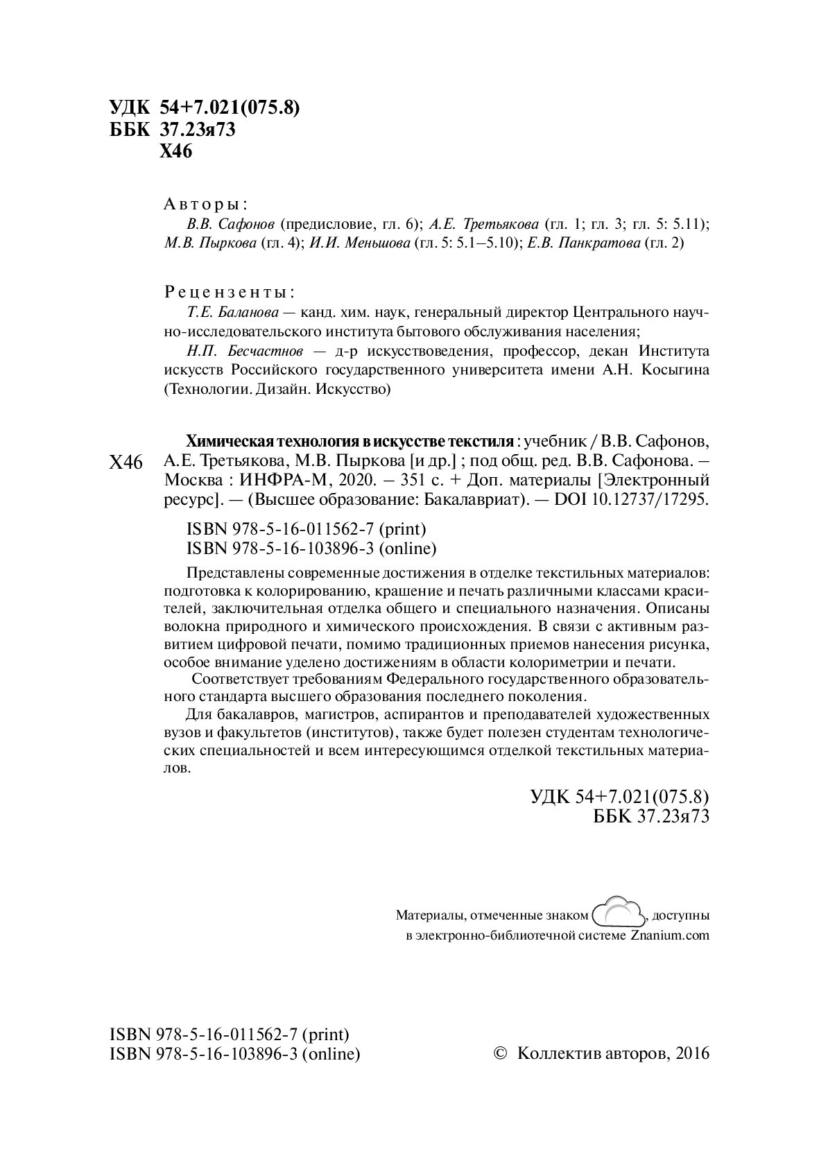 Химическая технология в искусстве текстиля. Учебник. Студентам ВУЗов