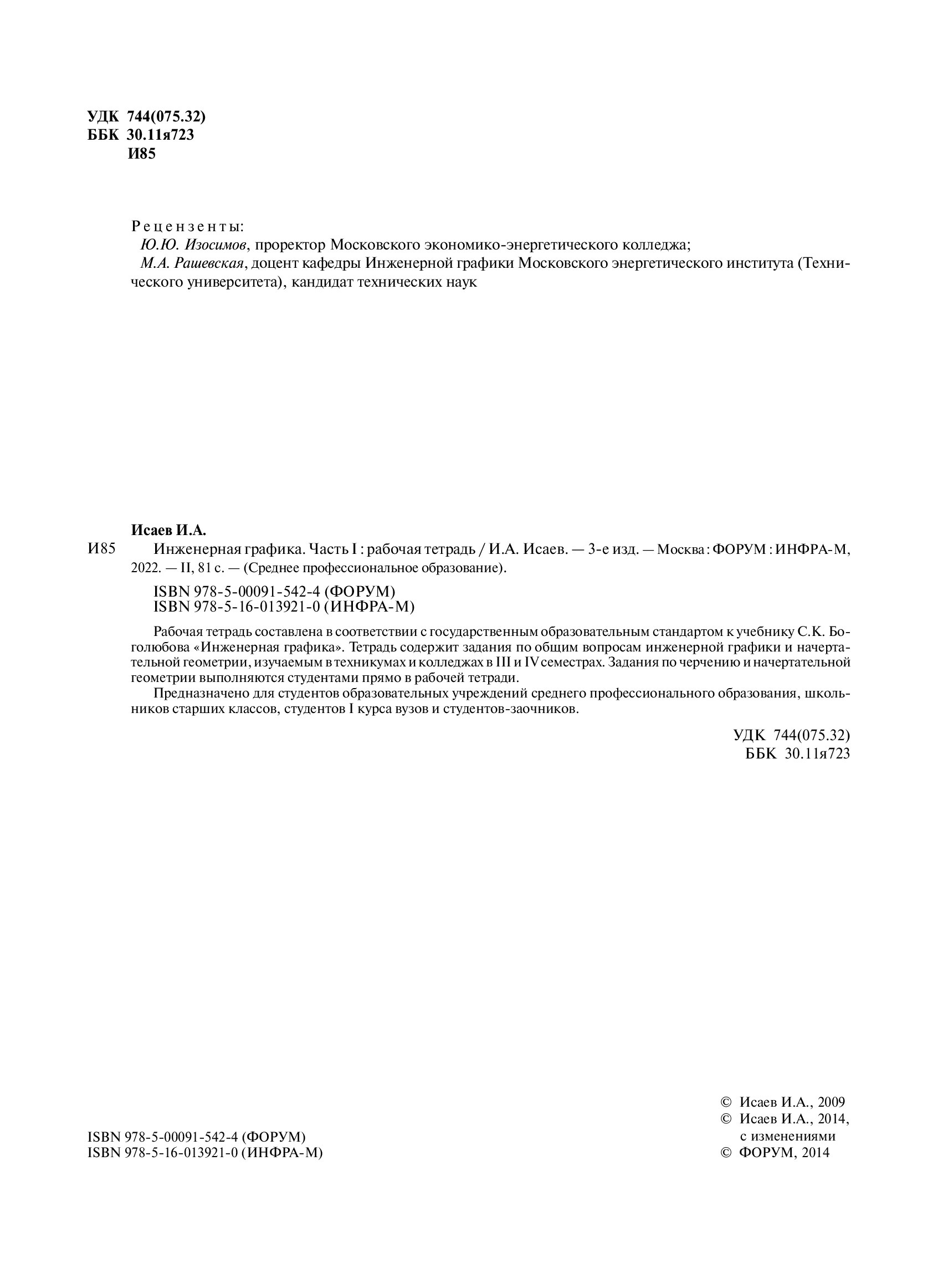Инженерная графика. Часть 1. Рабочая тетрадь к учебнику. Студентам ССУЗов | Исаев Игорь Андреевич