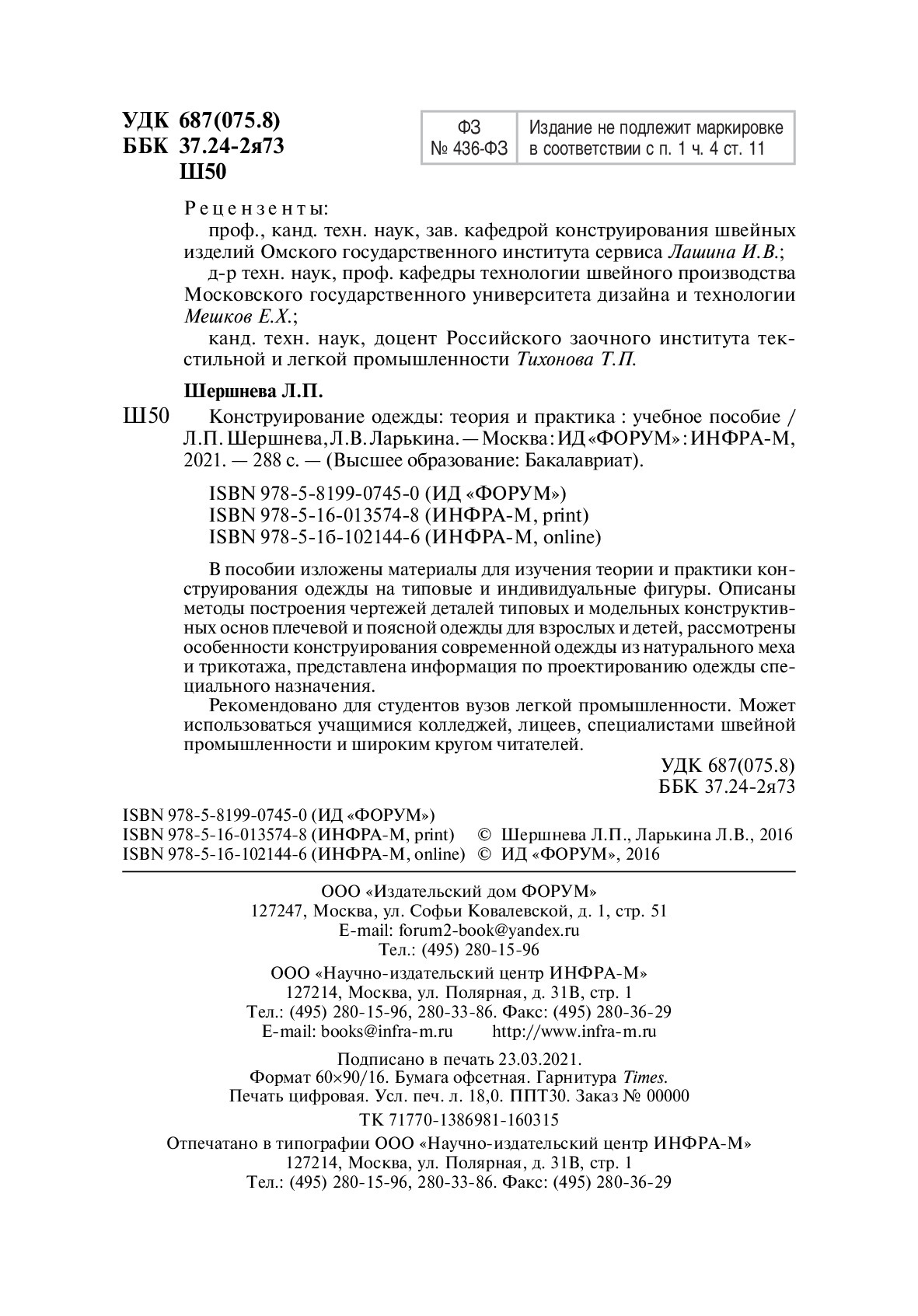 Конструирование одежды. Теория и практика. Учебное пособие. Студентам ВУЗов | Шершнева Лидия Петровна, Ларькина Лариса Васильевна