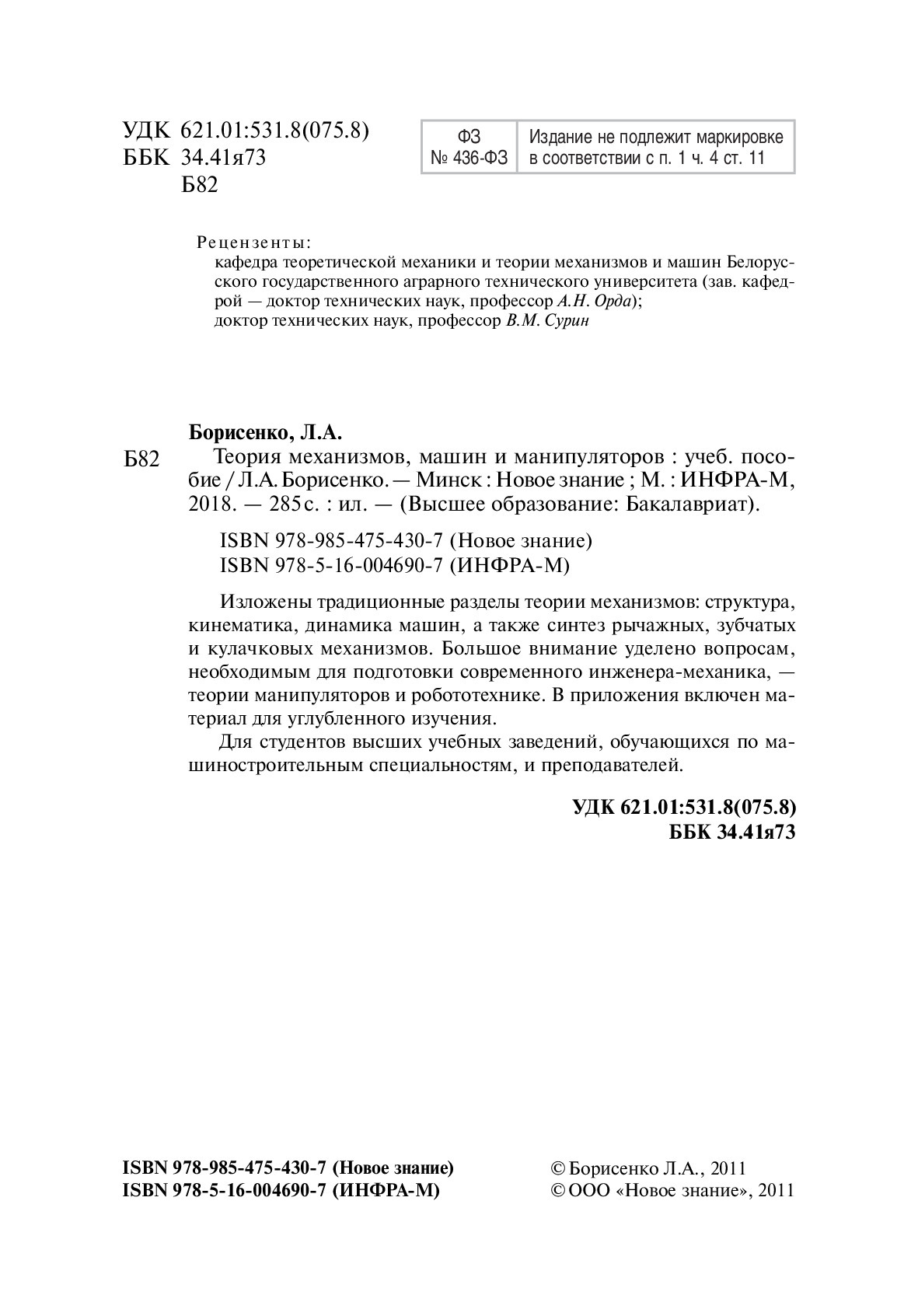 Теория механизмов, машин и манипуляторов. Учебное пособие. Студентам ВУЗов | Борисенко Леонид Анатольевич