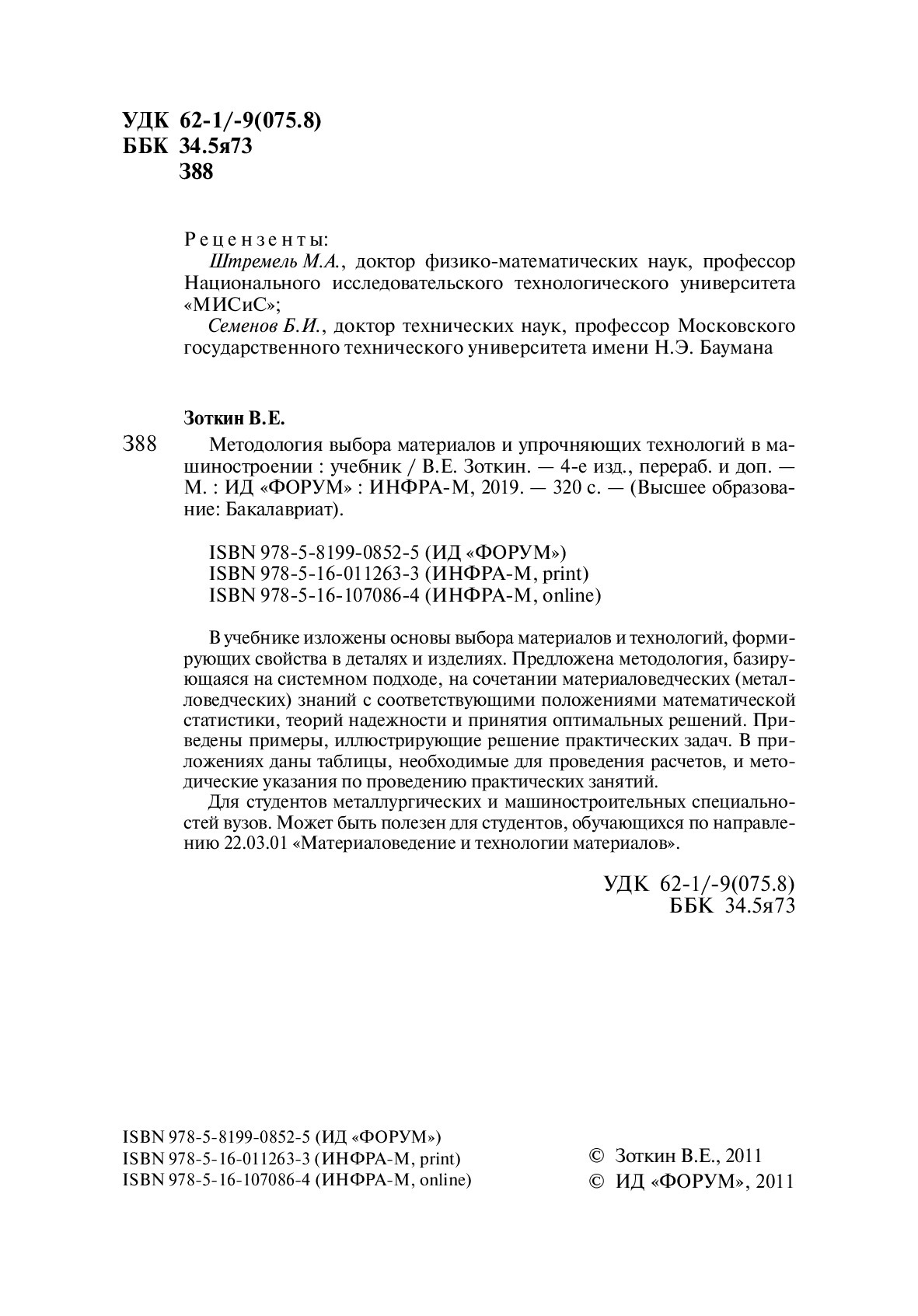 Методология выбора материалов и упрочняющих технологий в машиностроении. Учебник. Студентам ВУЗов | Зоткин Виктор Ефимович