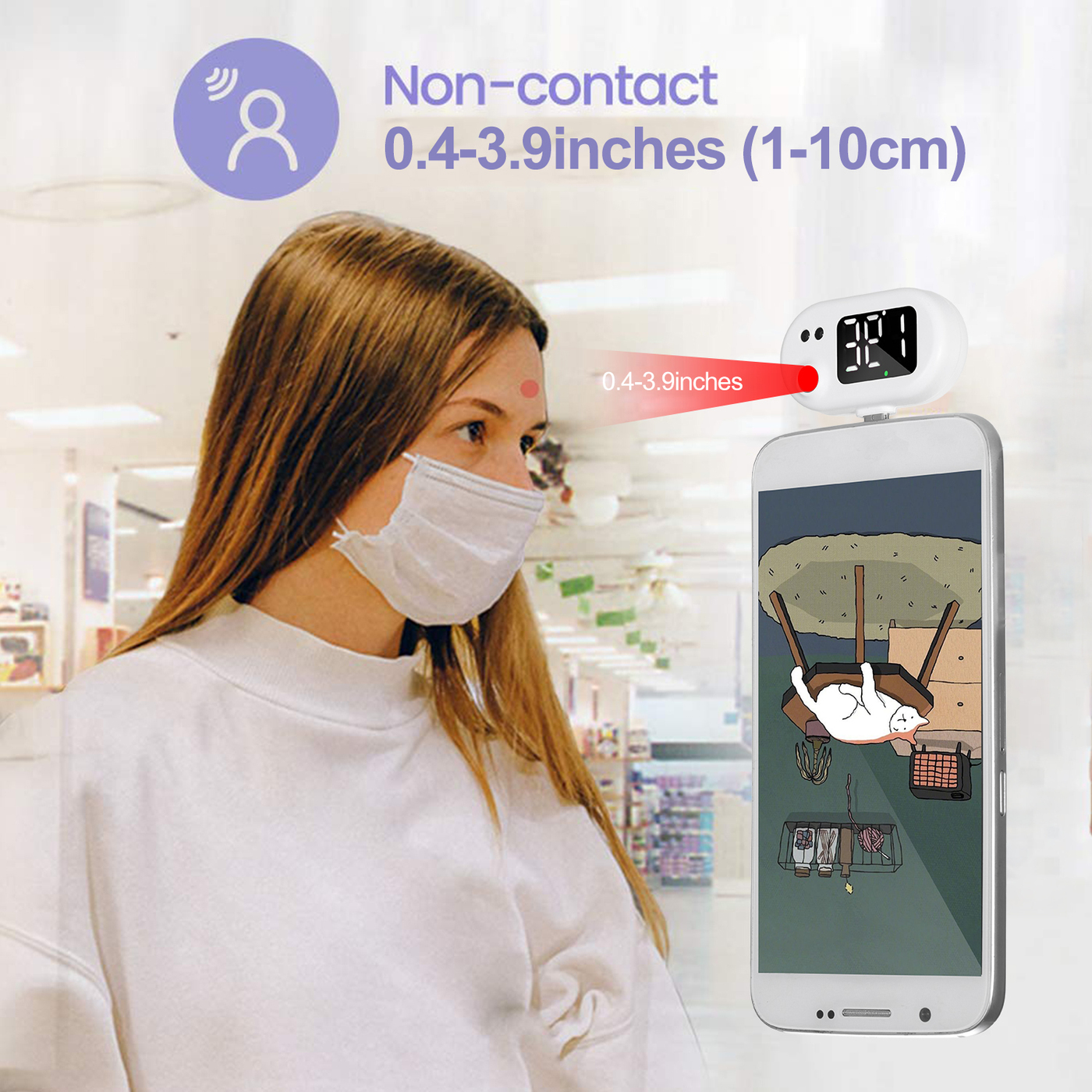 Бесконтактный инфракрасный термометр для лба 3-цветный ЖК-дисплей на задней