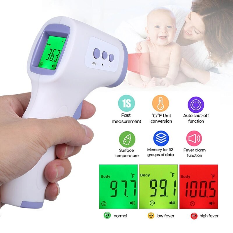 Бесплатный инфракрасный термометр, цифровая ЖК-теплотетерметр для лба, три цвета с подсветкой