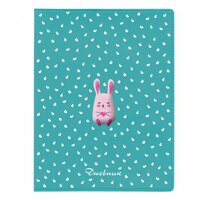Дневник 1-11 класс, кожзам (лайт), полимерная наклейка, ляссе, 48 л., альт, Кролик с сердцем, 10-255