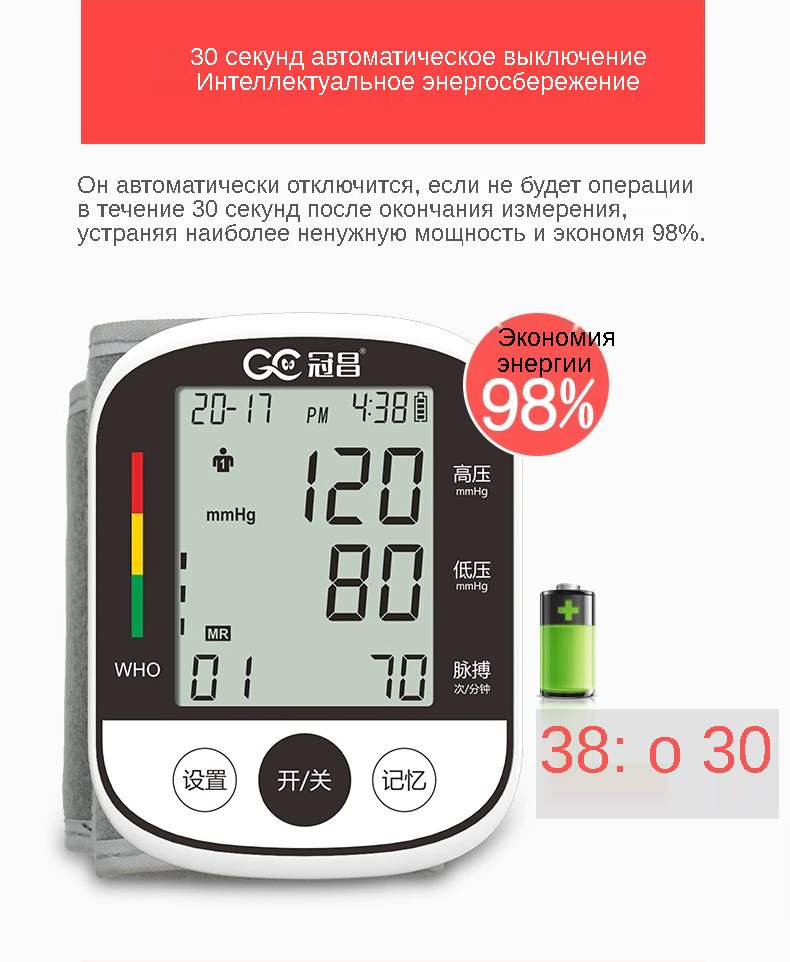 Бытовой автоматический прибор для измерения артериального давления на запястье-69
