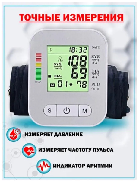 Автоматический тонометр с манжетой Electronic Blood Pressure Monitor