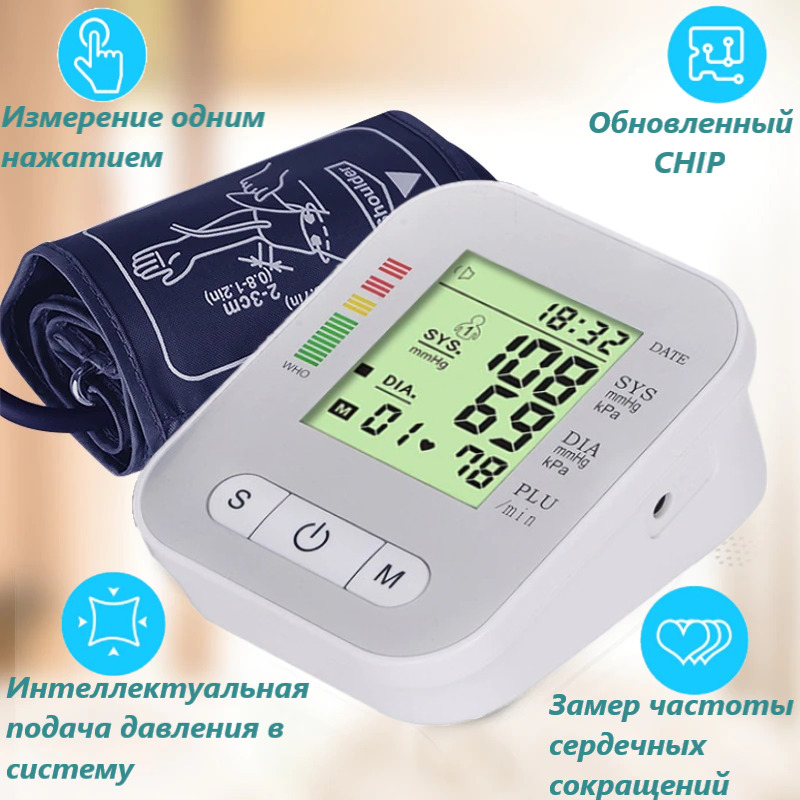 Автоматический тонометр на плечо/измеритель давления/измеритель пульса/тонометр на руку