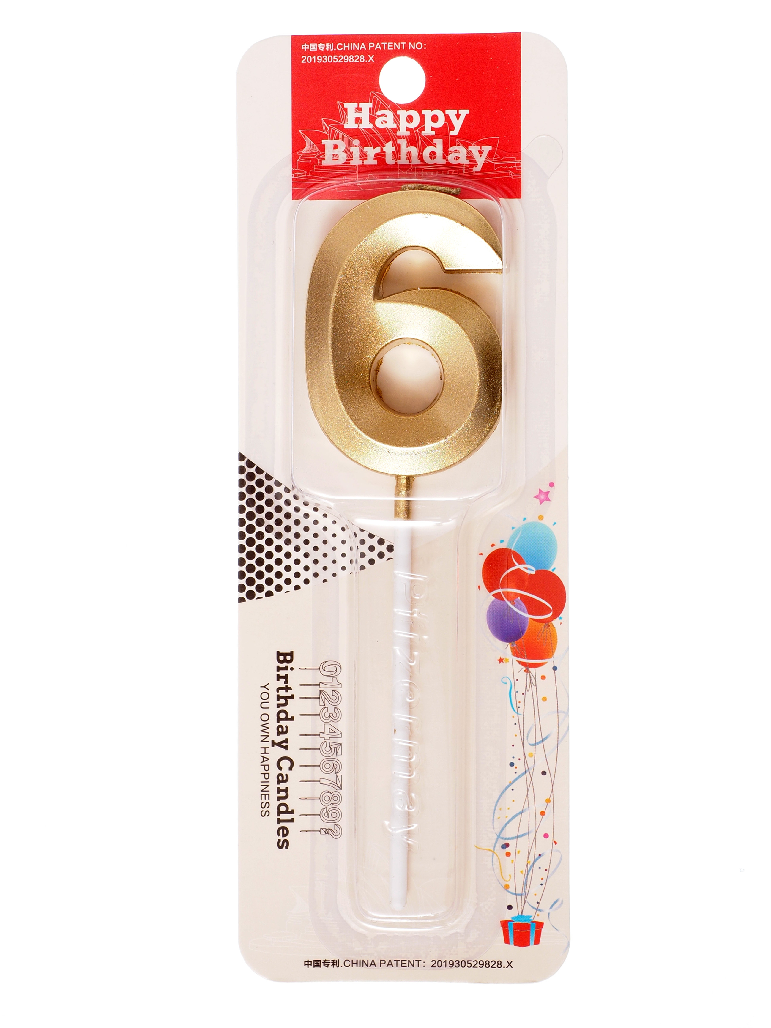 Свечи для торта, Топпер для торта цифра 6, 1 уп.