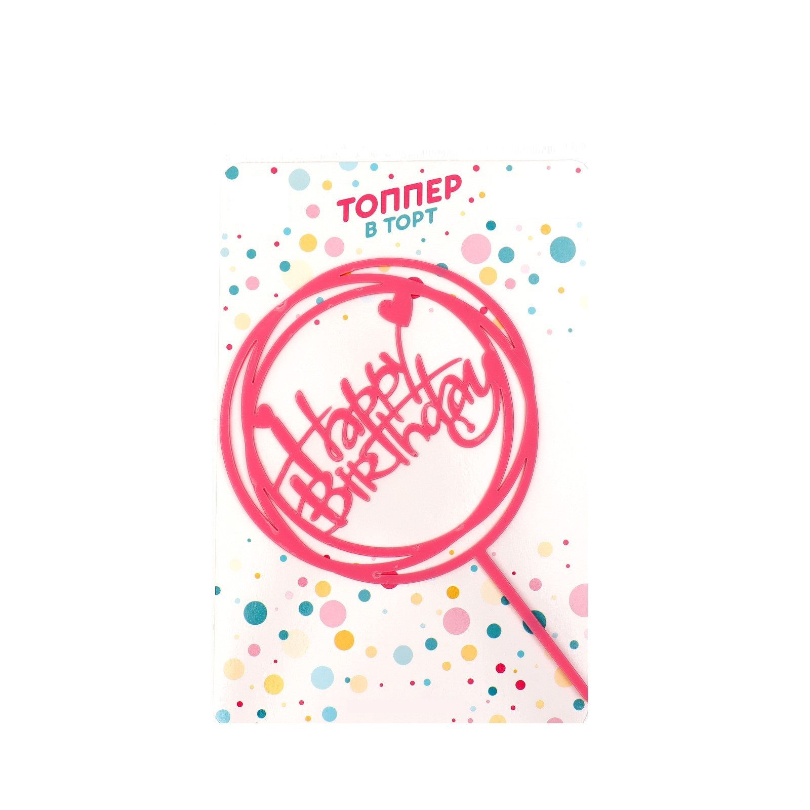 Топпер на торт Страна Карнавалия "С Днём Рождения", круг, цвет розовый