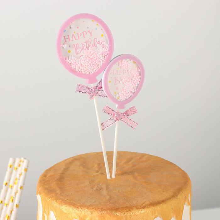 Топпер для торта "С Днём Рождения, шарики, вензеля"