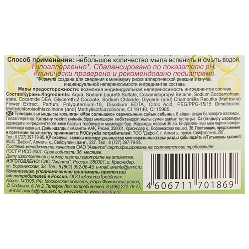 Моё солнышко Шампунь Леденцовая свежесть с пшеничными протеинами и пантенолом