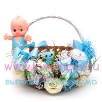 Шар (18''/46 см) Круг, С Днем Рождения (сладости), Голубой, 1 шт.