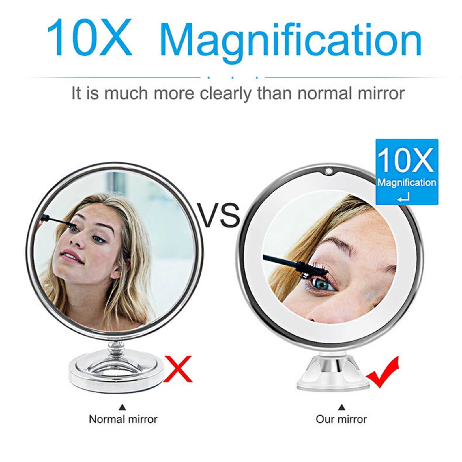 Зеркало с подсветкой для макияжа 16 светодиодов + увеличительное зеркало 10Х d7.5 см, 17х22 см