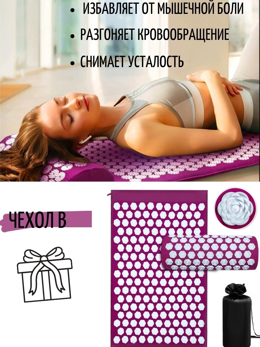 Массажный акупунктурный набор, аппликатор Кузнецова: коврик + валик + мешок