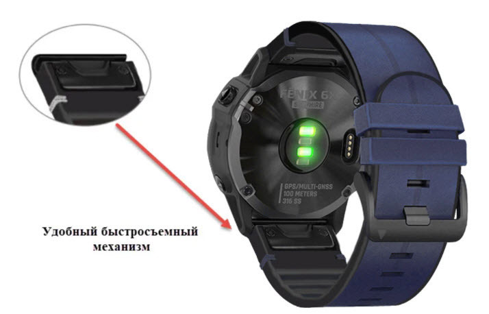 Ремешок быстросъемный кожаный на силиконовой основе для смарт-часов Garmin Fenix 3/5X/6X/6X Pro/ Enduro/Quaitx/D2/Descent/Tactix/Foretrex 26 мм