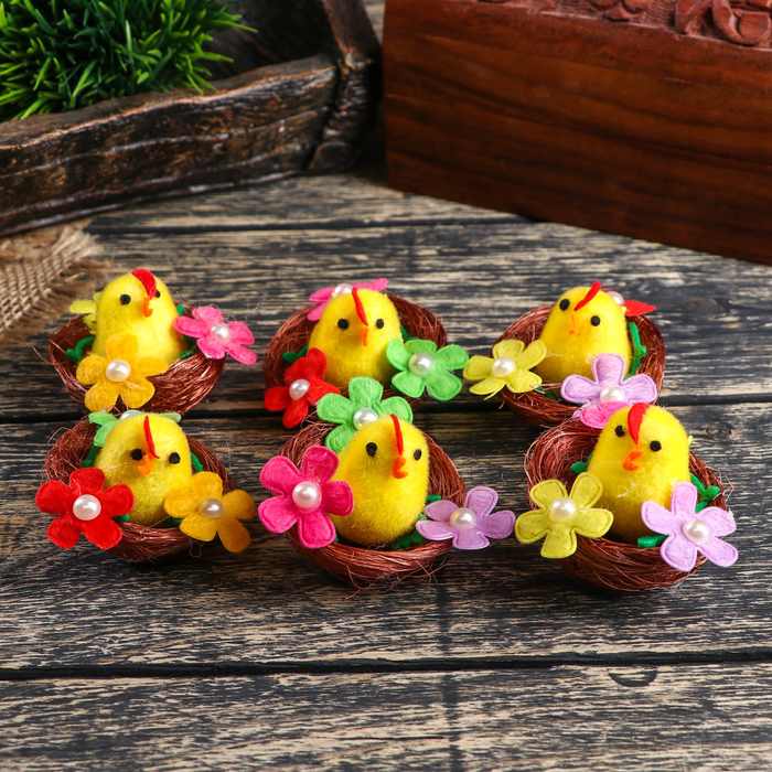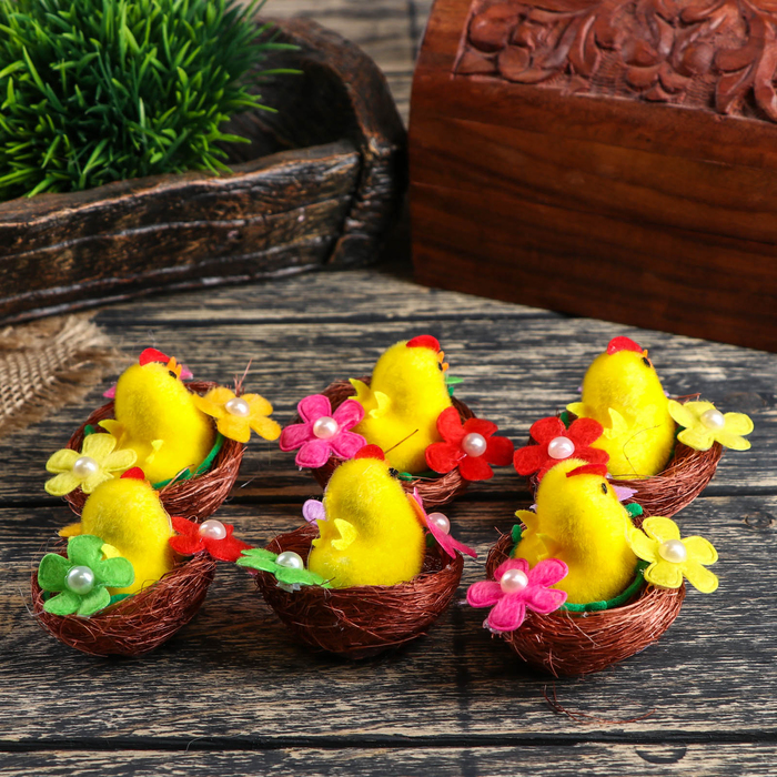 Сувенир пасхальный "Цыплёнок в гнезде с цветами" набор 6 шт 3х4х4 см