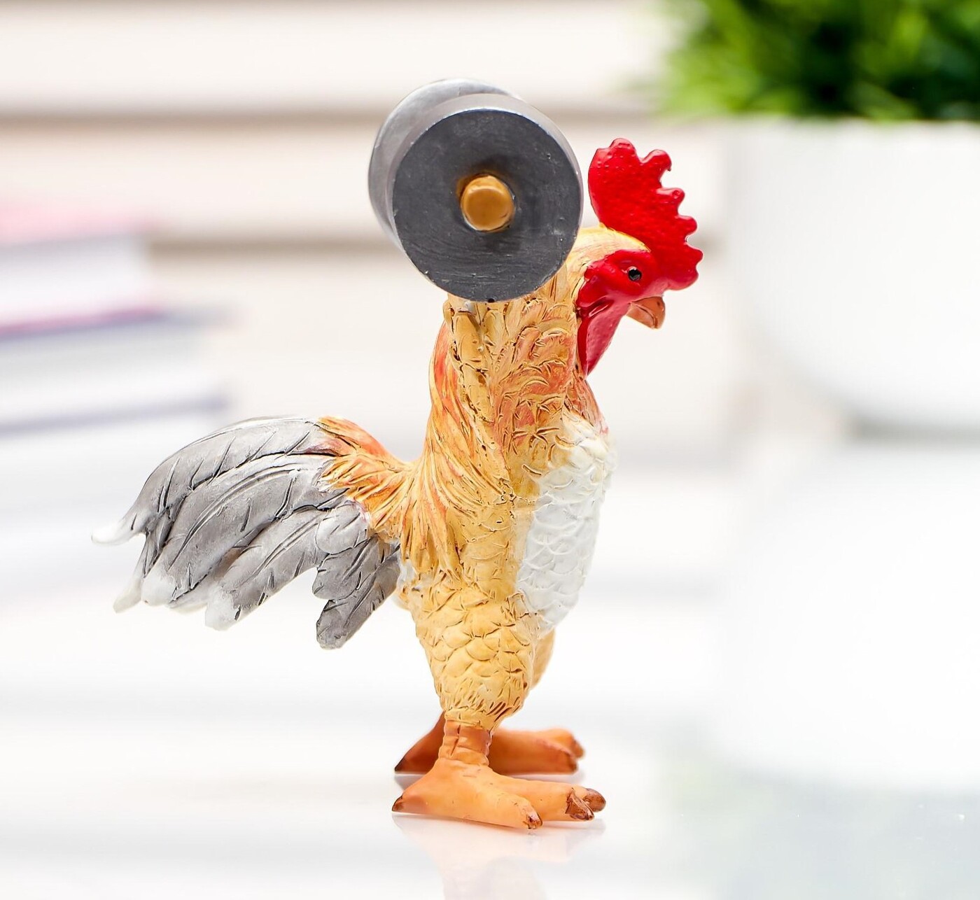 Сувенир полистоун миниатюра "Петя-петушок со штангой" 9,5х8,5х9 см
