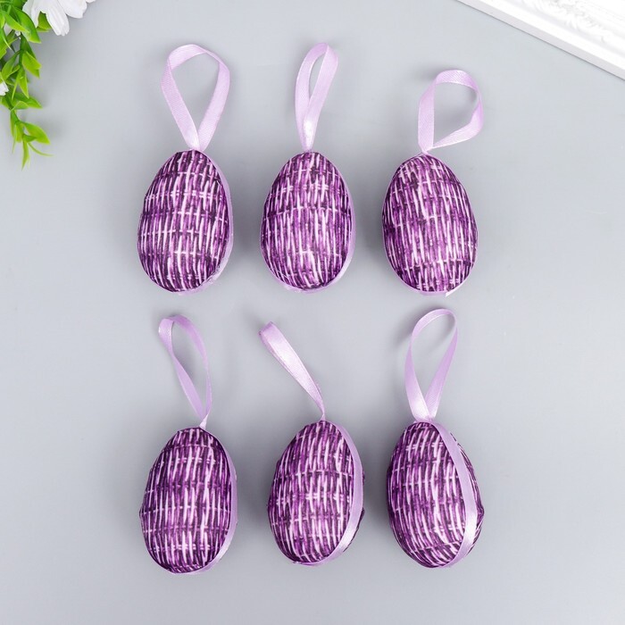 Декор пасхальный подвеска"Яйцо в полоску" набор 6 шт МИКС 6х4 см