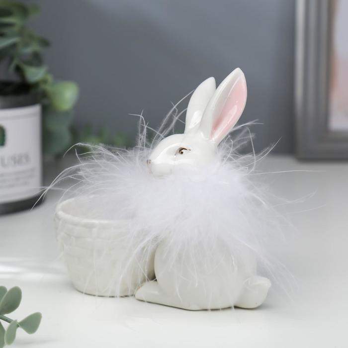 Сувенир керамика подставка Белый кролик с корзинкой МИКС 10,7х6,2х11,5 см Life
