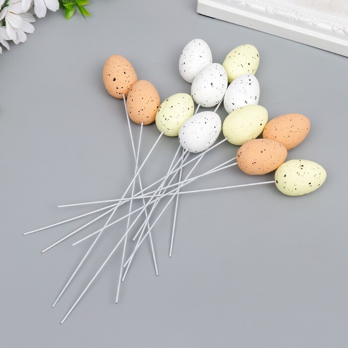 Декор пасхальный на палочке "Перепелиные яички" набор 12 шт 2,5х3,5 см
