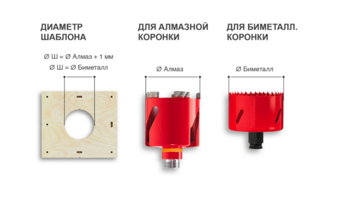 Комплект шаблонов для сверления подрозетников 5 шт диаметром 68 мм.